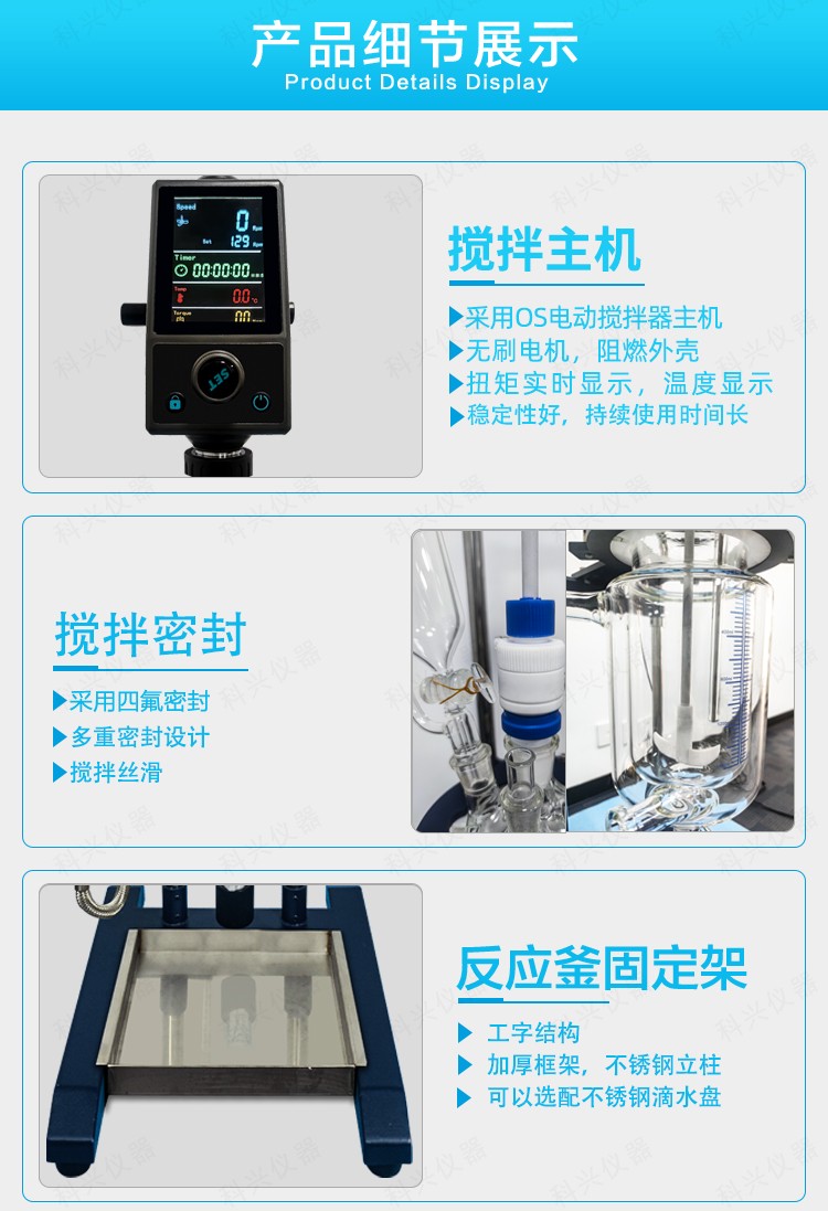 公司又根據(jù)客戶具體使用環(huán)境做出1-5L小型玻璃反應(yīng)釜升級款,采用我司OS-Pro系列攪拌器主機(jī)作為核心主機(jī),一體大屏顯示轉(zhuǎn)速,定時,溫度和實時的電機(jī)扭矩。